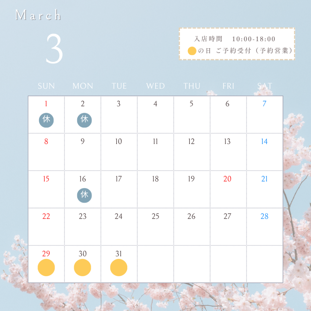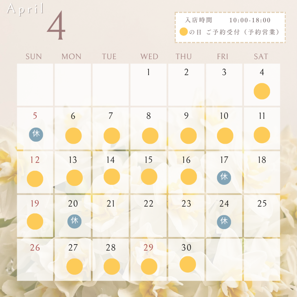 3 月、4 月 のカレンダー